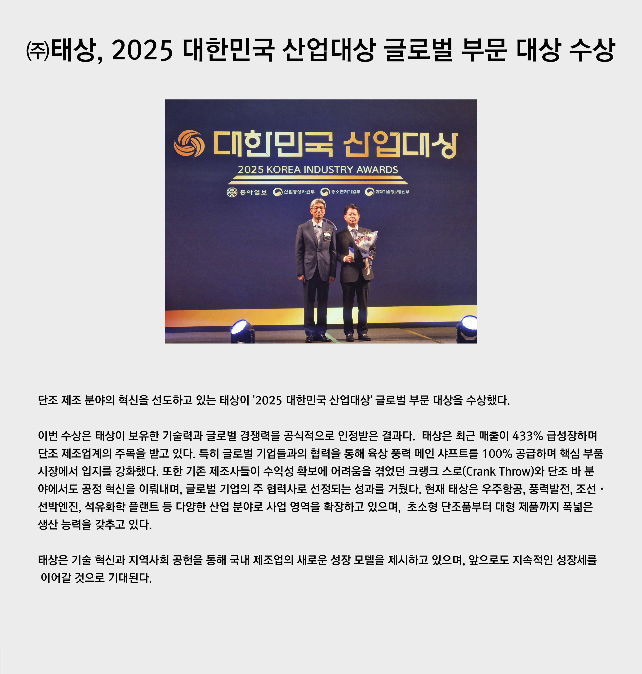 ¢ßÅ»ó 2025 ´ëÇѹα¹ »ê¾÷´ë»ó ±Û·Î¹ú ºÎ¹® ´ë»ó ¼ö»ó