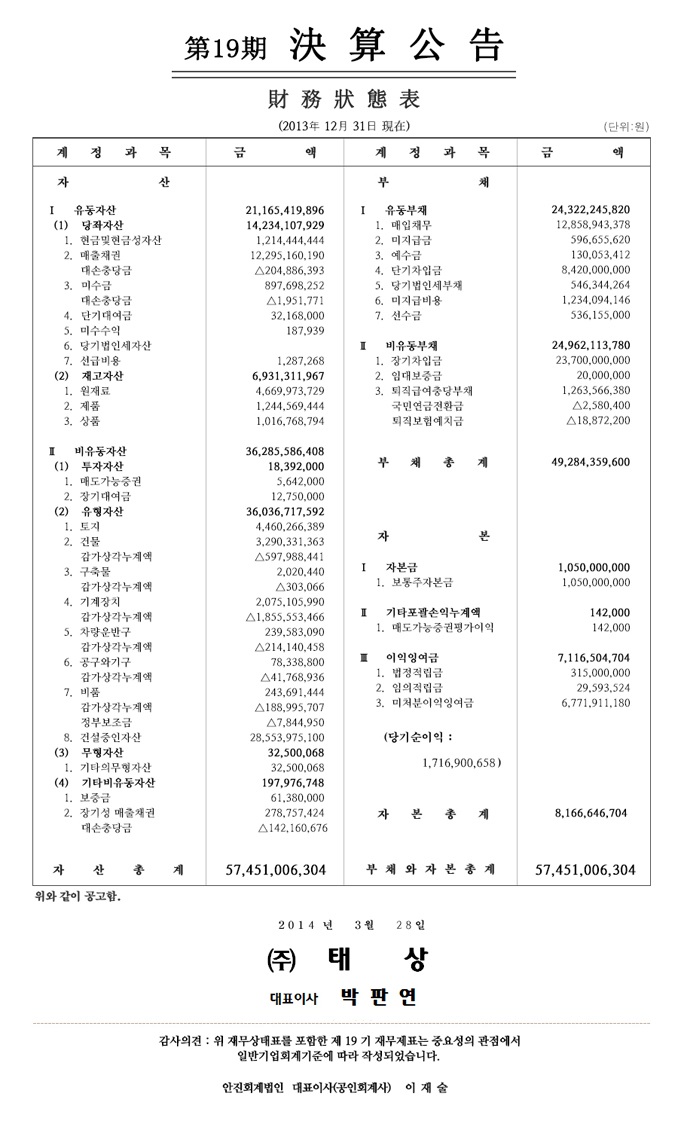 2014³â ¢ßÅ»ó Á¦19±â À繫»óÅÂÇ¥ ÀüÀÚ°ø°í