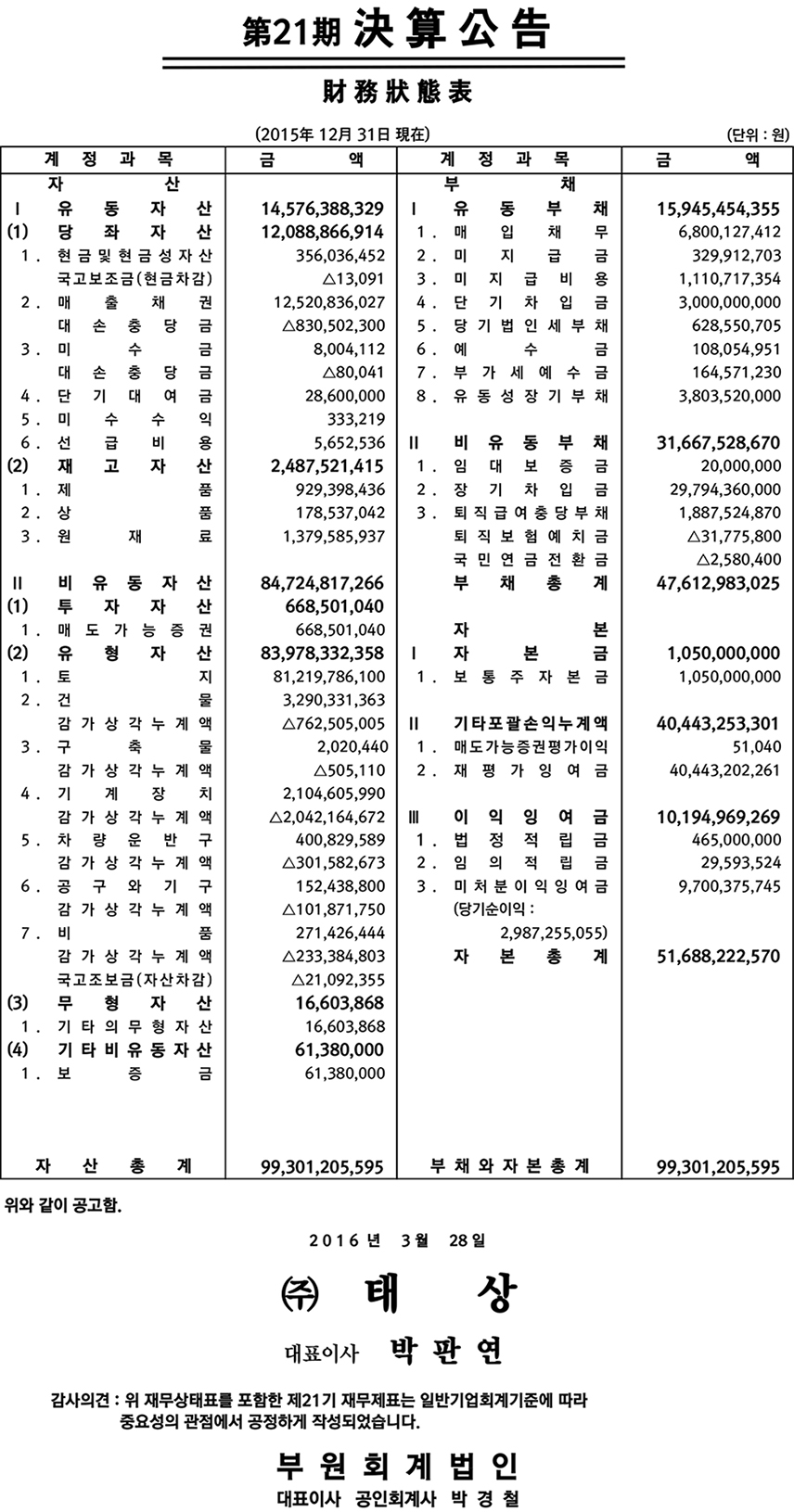 2016³â ¢ßÅ»ó Á¦21±â À繫»óÅÂÇ¥ ÀüÀÚ°ø°í