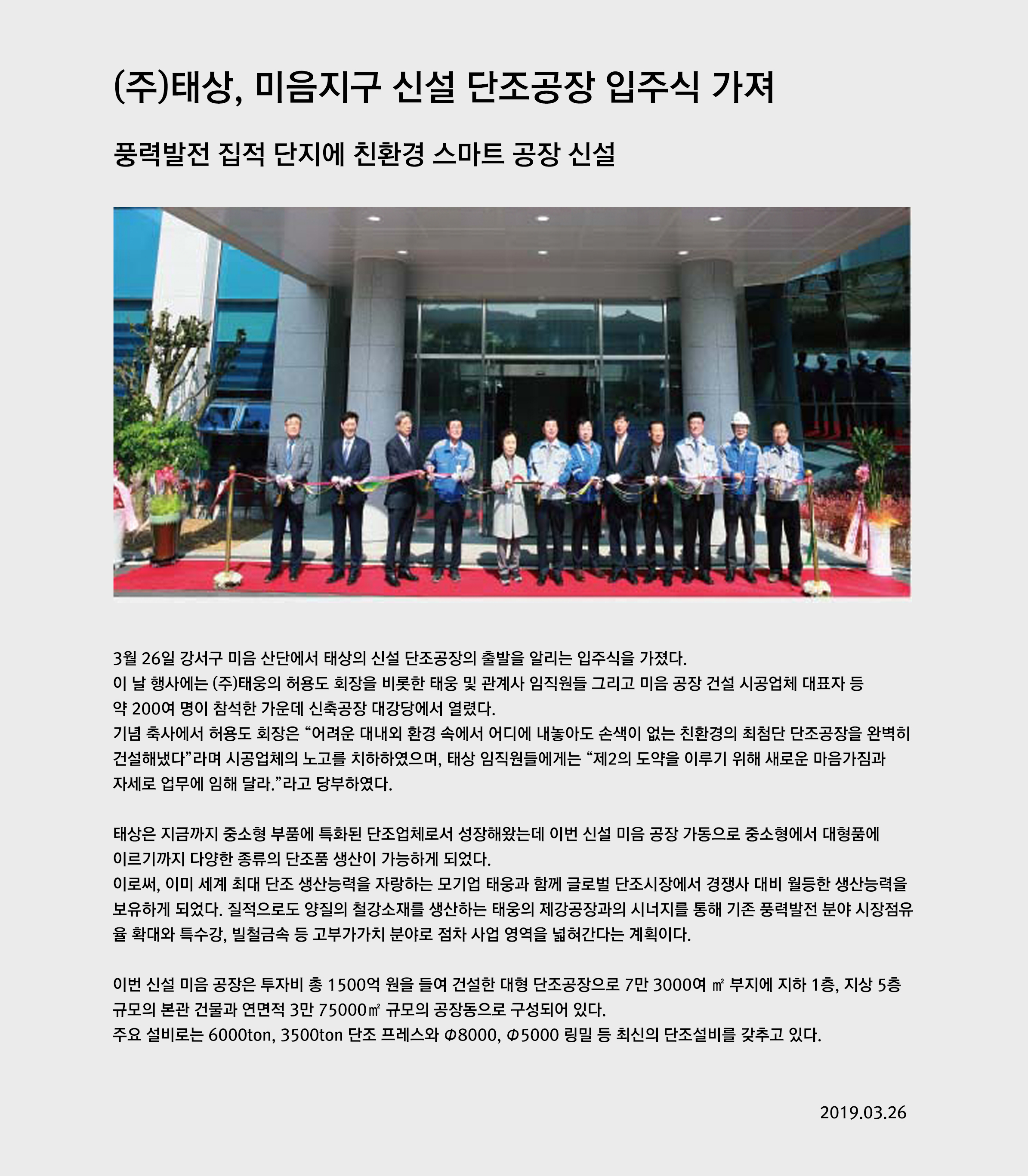 2019³â ¢ßÅ»ó ¹ÌÀ½Áö±¸ ½Å¼³ ´ÜÁ¶°øÀå ÀÔÁÖ½Ä Çà»ç