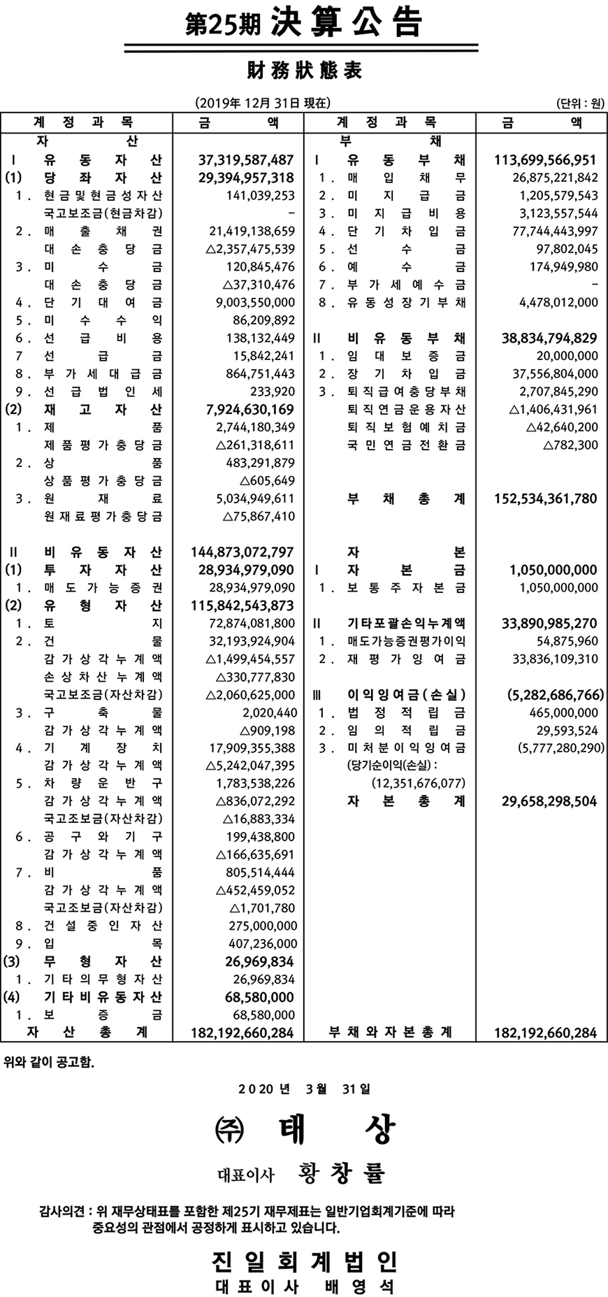 ¢ßÅ»ó Á¦25±â À繫»óÅÂÇ¥ ÀüÀÚ°ø°í