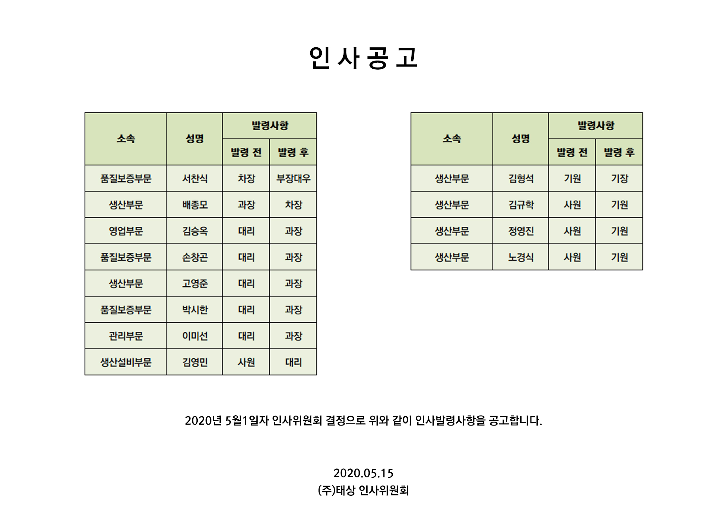 ¢ßÅ»ó 2020³â Á¤±âÀÎ»ç°ø°í