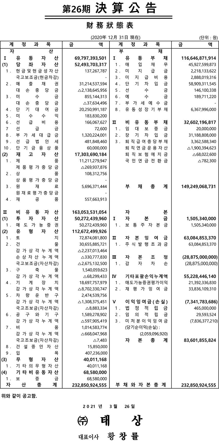 ¢ßÅ»ó Á¦26±â À繫»óÅÂÇ¥ ÀüÀÚ°ø°í