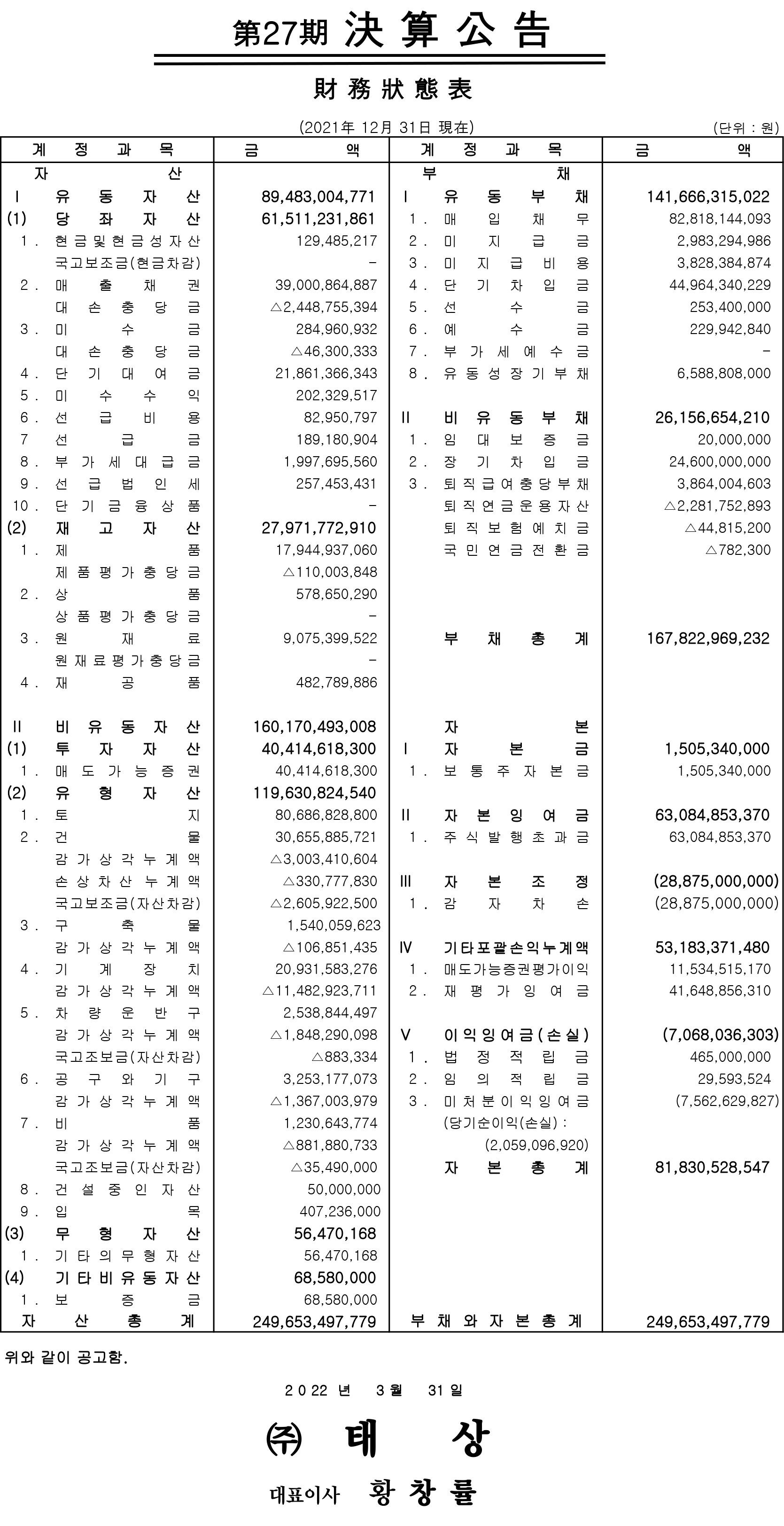 ¢ßÅ»ó Á¦27±â À繫»óÅÂÇ¥ ÀüÀÚ°ø°í