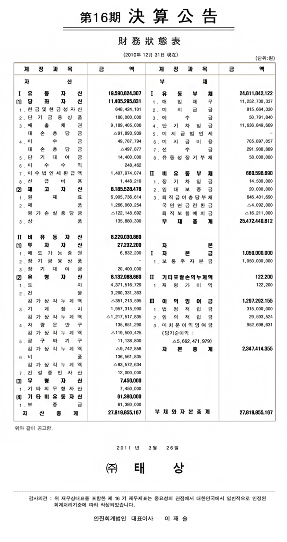 2011³â ¢ßÅ»ó Á¦16±â À繫»óÅÂÇ¥ ÀüÀÚ°ø°í