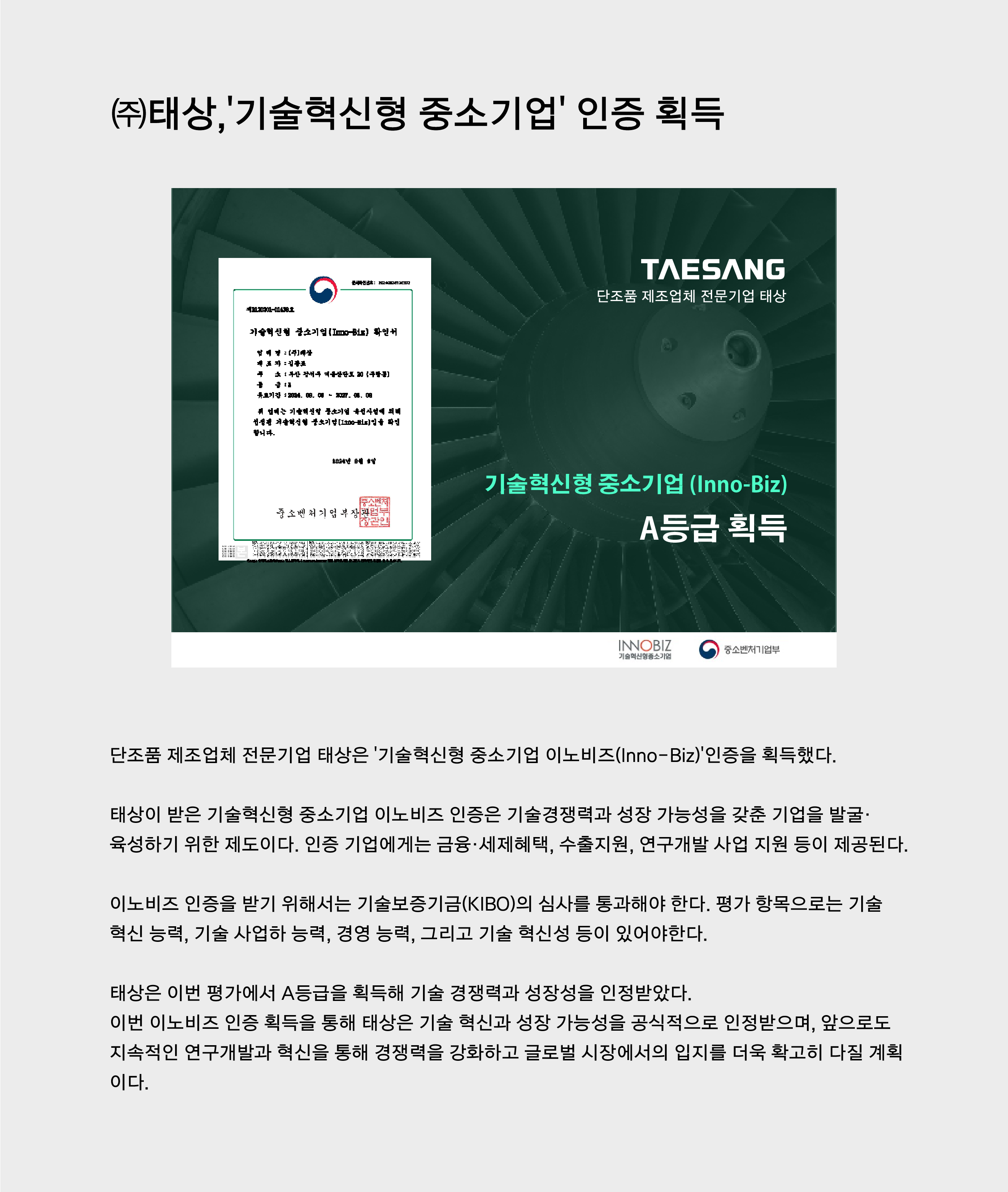 ¢ßÅ»ó '±â¼úÇõ½ÅÇü Áß¼Ò±â¾÷ À̳ëºñÁî(Inno-Biz)' ÀÎÁõ ȹµæ